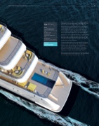 This use of glazing deines her exterior proile and speaks to Sinot’s holistic approach to design. “The strong balance between inside and out are one of the quintessential elements which we have brought to the yacht,” the Sinot team says of its inluence on the project. “Large guest windows connect the interior seamlessly, allowing the opportunity to capture the beautiful views outside.”